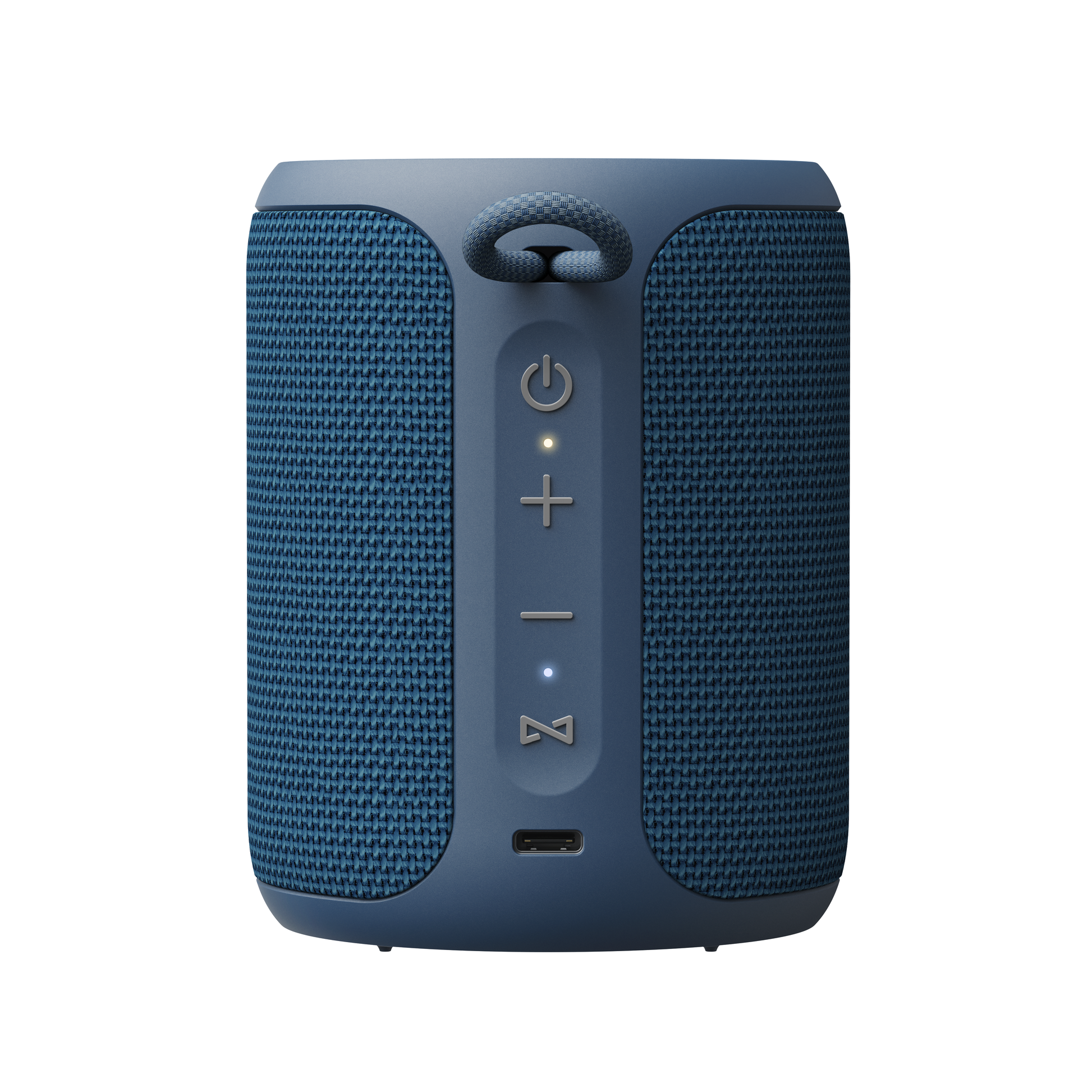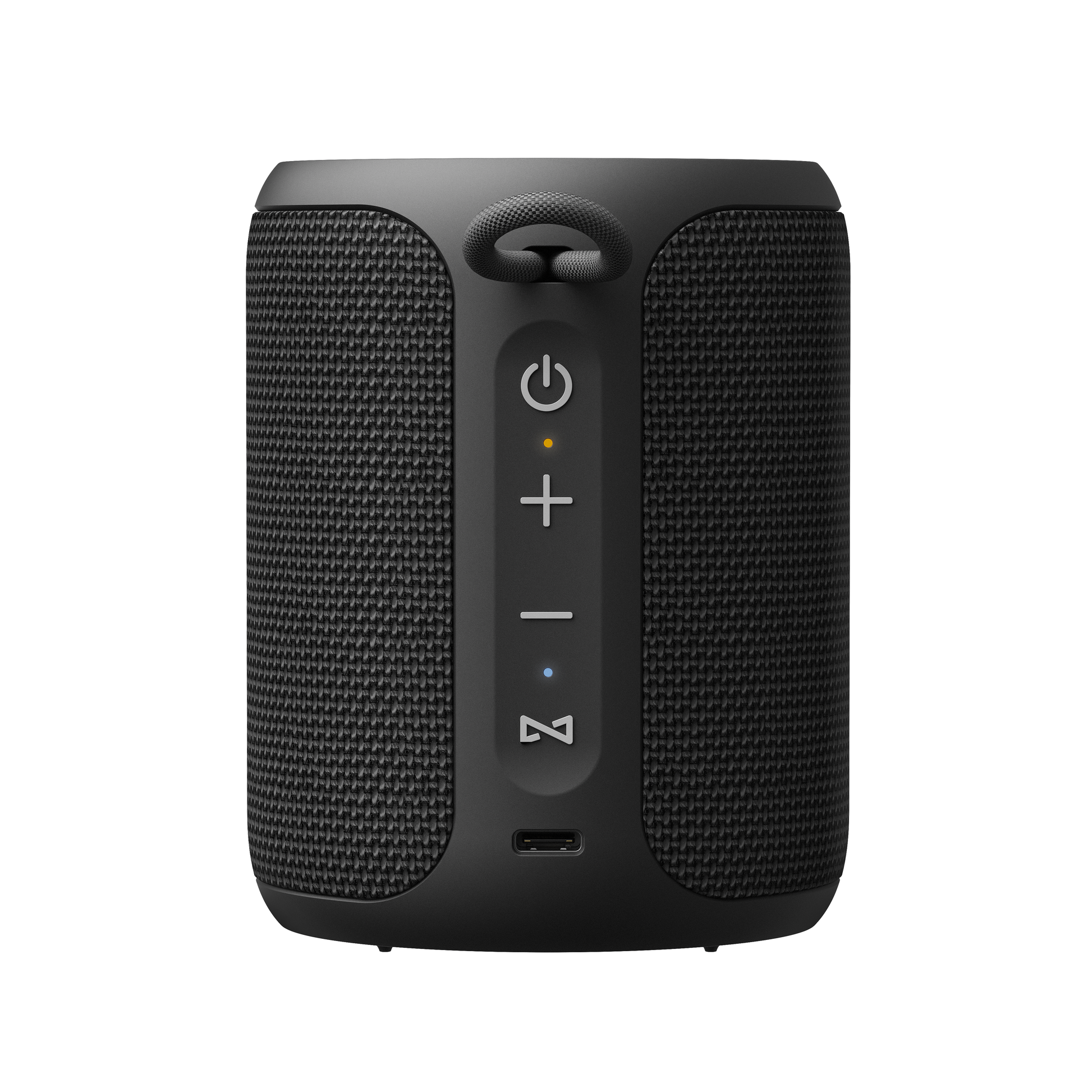 - Stylish fabric grill and compact cylindrical design